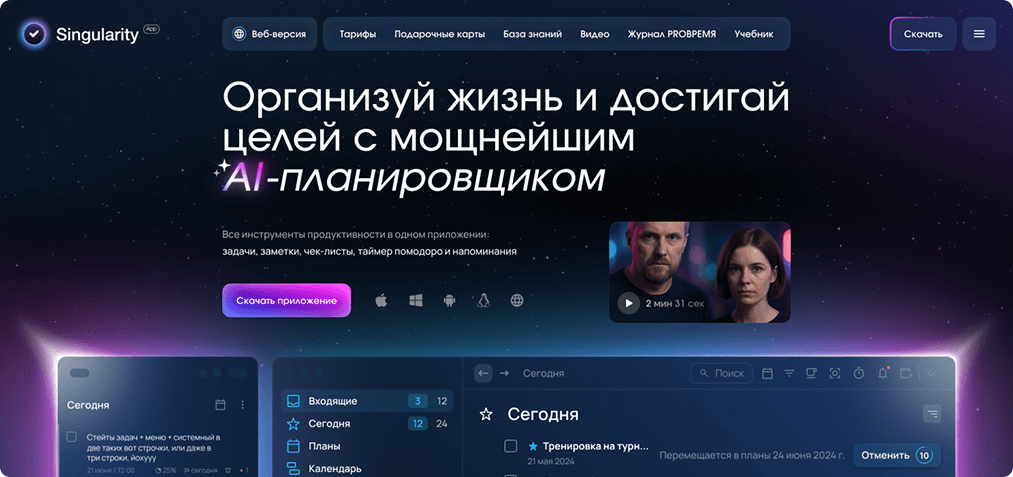 - как самой положительной, что вселенная Сингулярити закрывает все возможные кейсы в тайм-менеджменте,
